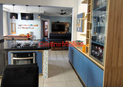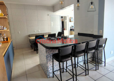 - Península de 2 metros equipada com cooktop, forno a gás e churrasqueira elétrica