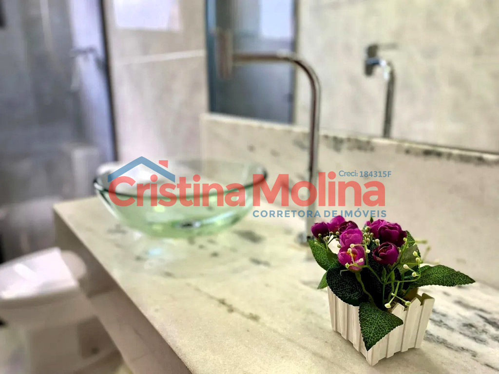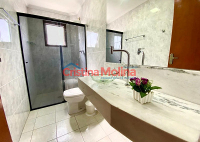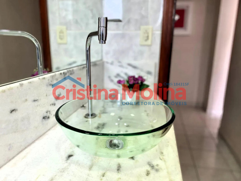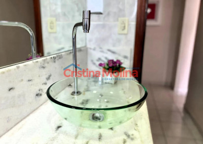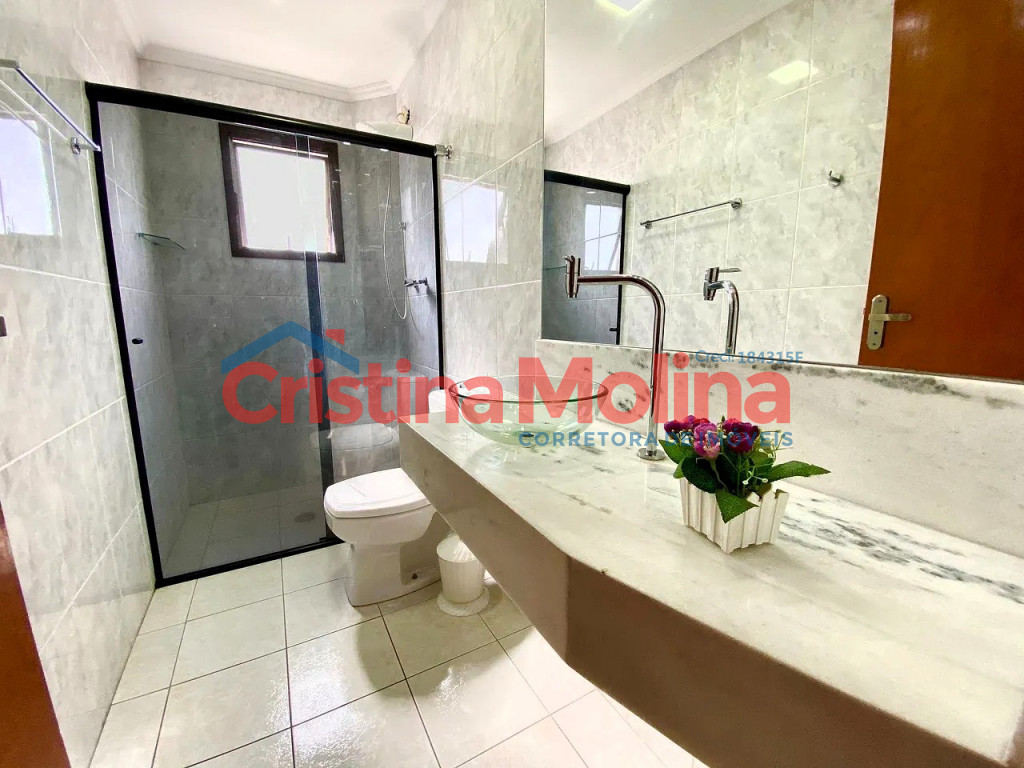 - 1 banheiro com pia em mármore e box de vidro temperado