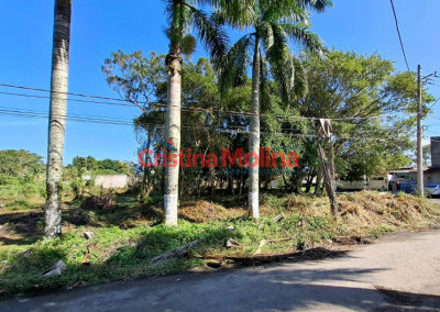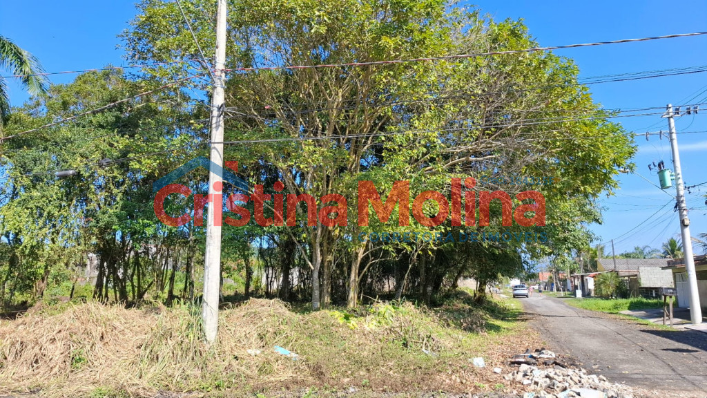 Excelente terreno plano e arborizado, de esquina, localizado em uma das regiões mais agradáveis de Peruíbe, a apenas 1,5 km do mar.