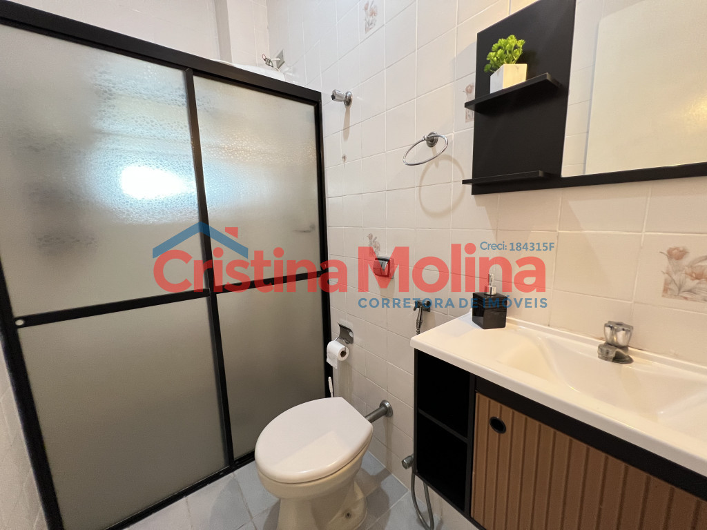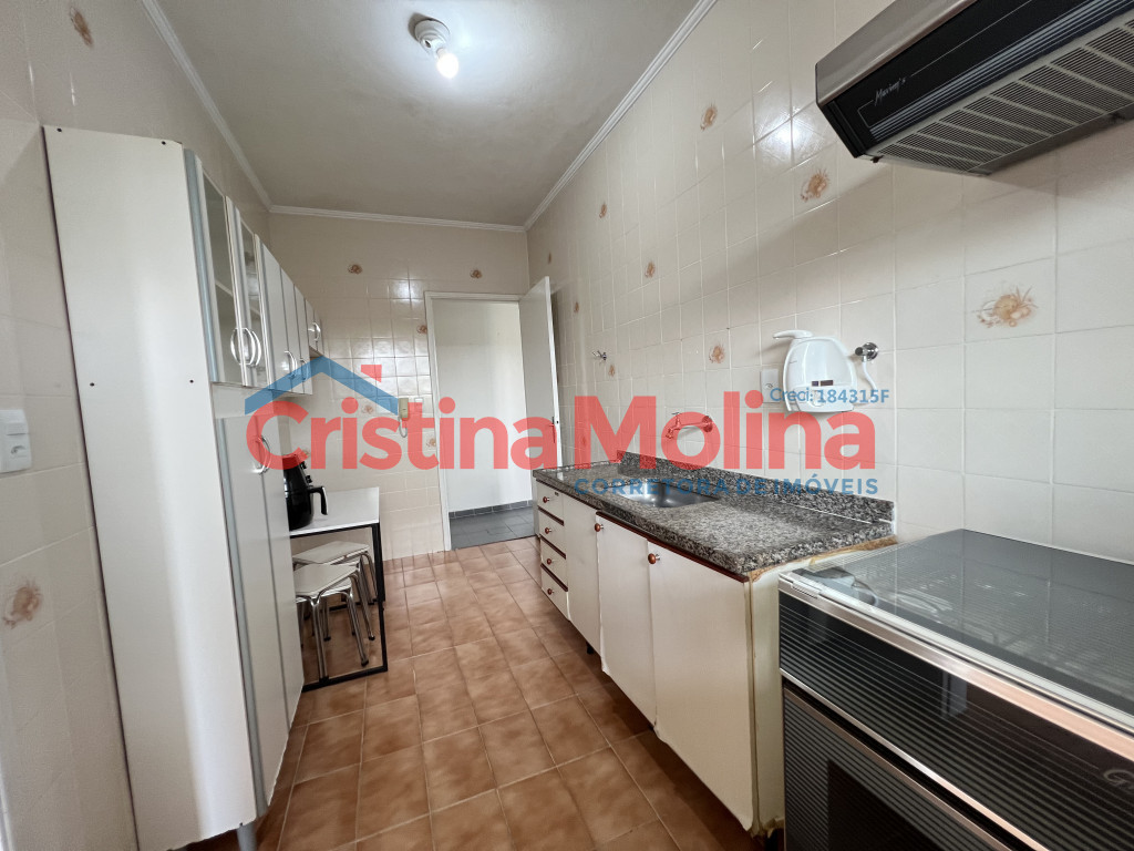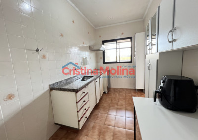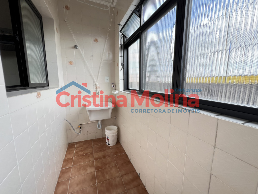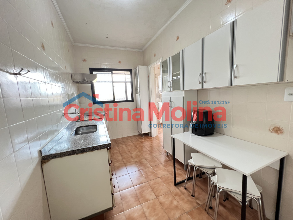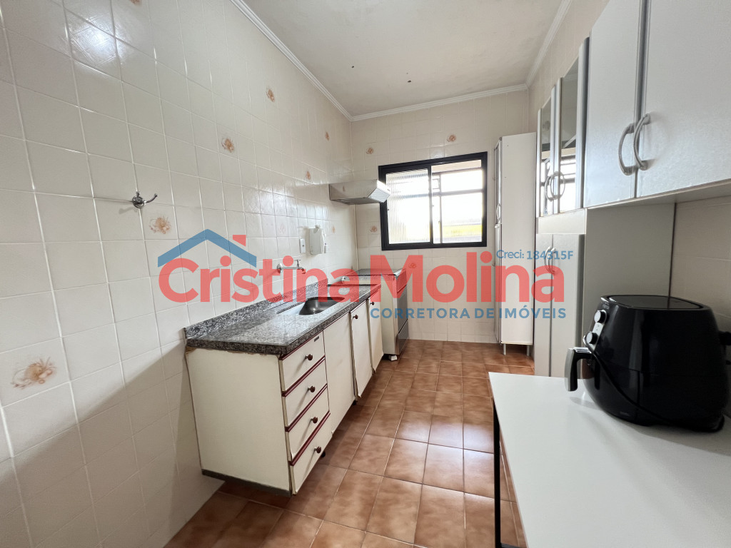 Imóvel amplo com sala, 1 dormitório, banheiro social, cozinha com armários, área de serviço e 1 vaga de garagem rotativa.
