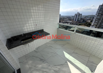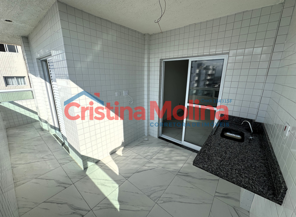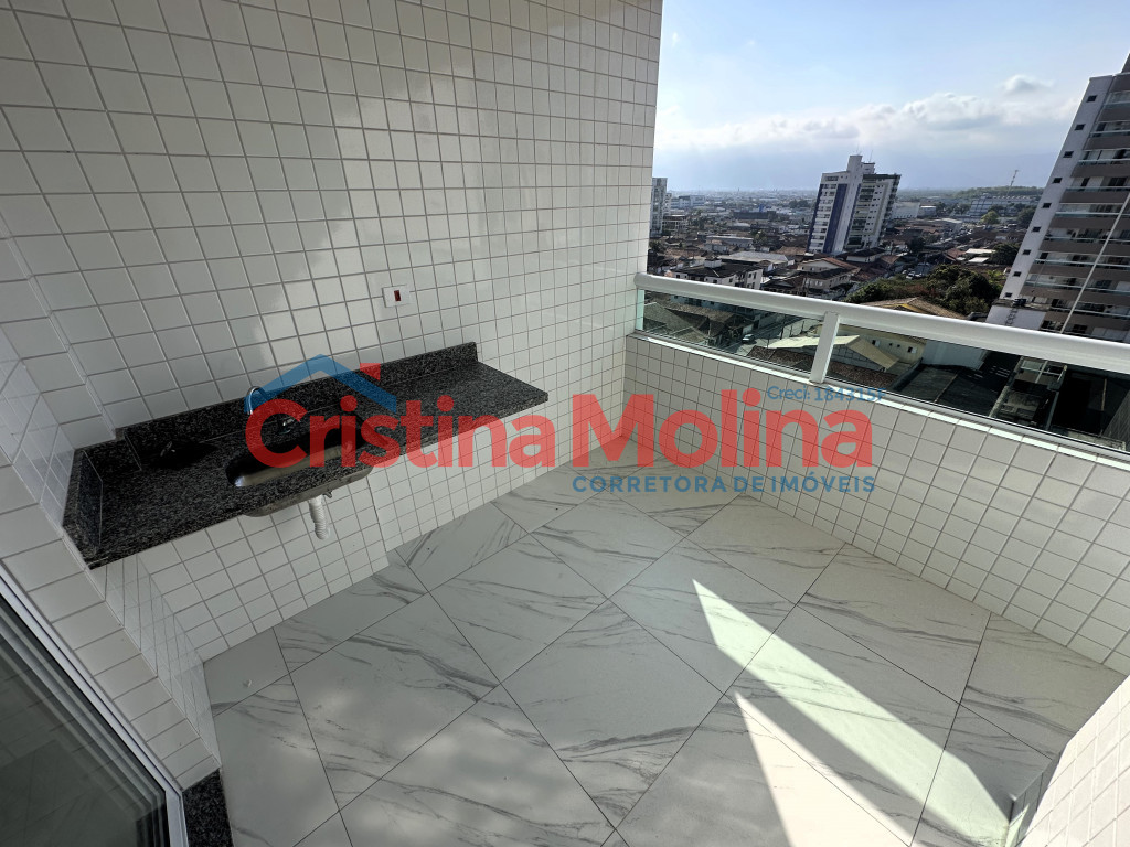 Apartamento novo, 2 dormitórios, suíte, sacada gourmet com vista livre, perto da praia, Guilhermina.